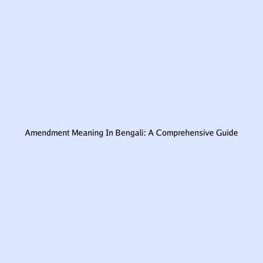 Amendment Meaning In Bengali: A Comprehensive Guide