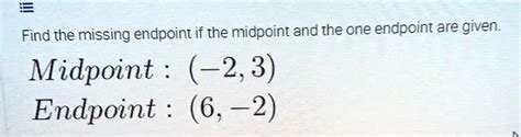 Okay, let’s put this knowledge into action. Here’s a step-by-step guide on how to find the endpoint when you’re given one endpoint and the midpoint: