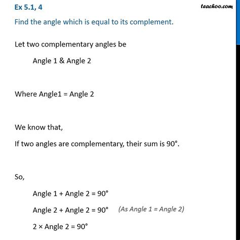 For all our Hindi-speaking friends out there, let’s translate this cool math concept. The phrase “find the angle which is equal to its complement” translates to “वह कोण ज्ञात कीजिए जो अपने पूरक के बराबर हो” (Vah kon gyat kijiye jo apne purak ke barabar ho). The key terms here are: