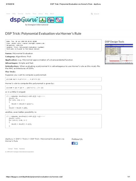 Another technique you might encounter, especially in specific numerical contexts, is using Taylor series expansions or Chebyshev approximations . These are powerful methods for approximating functions, and polynomials are often used as the building blocks. However, these are typically used for approximating a function over an interval, not for evaluating a specific polynomial at a single point. If you already have the polynomial coefficients and just need the value at a point, Horner’s method is the most direct and efficient approach.