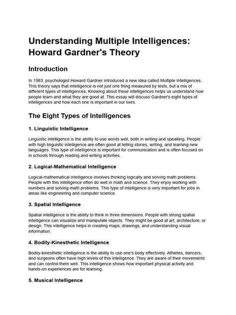Let’s get down to the nitty-gritty of Howard Gardner’s groundbreaking theory, first laid out in 1985 . He identified eight distinct intelligences , each representing a unique way individuals can be smart. It’s super important to remember that these intelligences aren’t mutually exclusive; most people possess a blend of them, with some being more dominant than others. Think of it as a unique fingerprint of intelligence for each person.