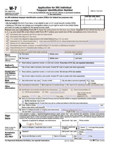 - Understanding Form W-7: Application for IRS Individual Taxpayer Identification Number