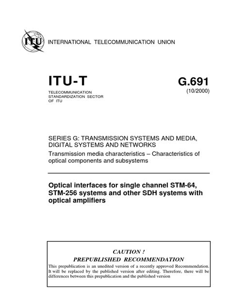 Hey everyone! Today, we’re diving deep into something super important for anyone working with optical networks: ITU-T Recommendation G.691 . If you’ve ever wondered about the nitty-gritty details of how optical interfaces should behave, what parameters matter, and why they matter, you’re in the right place. This recommendation is basically the rulebook for optical interfaces, ensuring that different pieces of equipment from different vendors can talk to each other seamlessly. Think of it as the universal translator for your fiber optic gear. Without standards like G.691, building complex and reliable optical networks would be a chaotic mess. So, let’s break down what this recommendation covers, why it’s so crucial, and how it impacts the world of telecommunications and data transmission.
