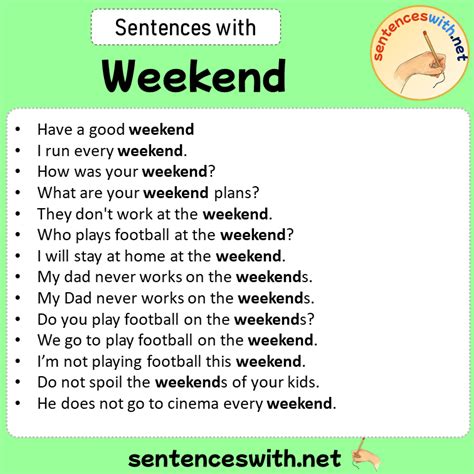Alright, so why should we even care about weekend sentences? Think about it. Most of us spend a good chunk of our lives working or studying, and the weekend is our time to recharge, have fun, and live a little. When Monday rolls around, or even later in the week, people naturally want to know what you’ve been up to. Sharing details about your weekend is a classic icebreaker, a way to build rapport, and honestly, just a fun part of connecting with others. It shows you’re engaged, that you have a life outside of work (which is super important, by the way!), and it can even lead to some awesome suggestions or shared experiences. Imagine telling your colleague about a hidden gem of a cafe you discovered – they might have their own favorite spot to share, or maybe they’ll want to check yours out! Good weekend sentences aren’t just filler; they’re conversation starters , relationship builders , and a way to express your personality . Plus, mastering them can boost your confidence in social and professional settings. So, it’s totally worth the effort to get them right!