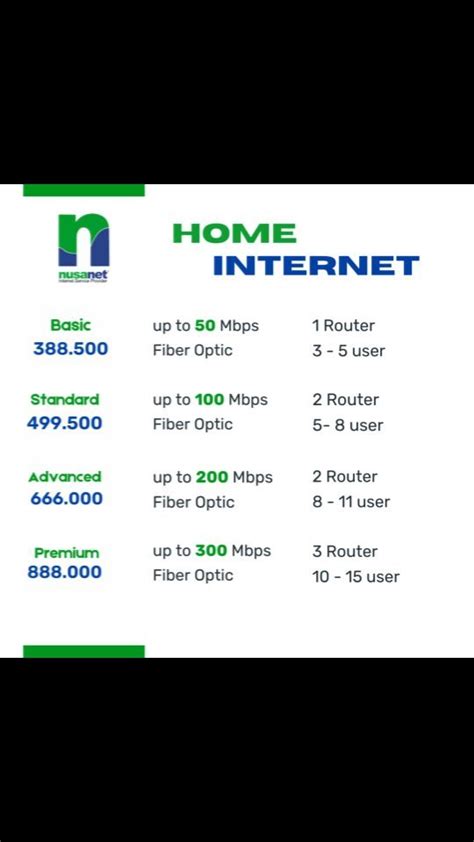 Now, let’s talk about pricing . Nusanet’s pricing is generally competitive with other internet service providers in the market. However, the exact cost of each plan will depend on your location and the specific options available in your area. In addition to the monthly subscription fee, you may also need to pay for installation and equipment rental. Be sure to factor these costs into your budget when comparing different plans. Nusanet frequently offers promotions and discounts to new customers. Keep an eye out for these deals, as they can save you a significant amount of money on your internet service. To get a detailed breakdown of Nusanet’s home internet plans and pricing, visit their website or contact their customer support team. They can provide you with a personalized quote based on your specific needs and location. Remember to carefully consider your internet usage habits and budget when choosing a plan. By selecting the right plan, you can enjoy a fast and reliable internet connection without breaking the bank.