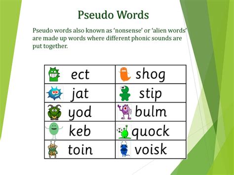 For example, a speech therapist might use pseudo words to help a child with articulation difficulties practice producing specific sounds. By focusing on pseudo words, the child can concentrate on the physical act of producing the sounds without being distracted by the meaning of the words. Similarly, pseudo words can be used to improve phonological awareness by helping individuals identify and manipulate the sounds within words.