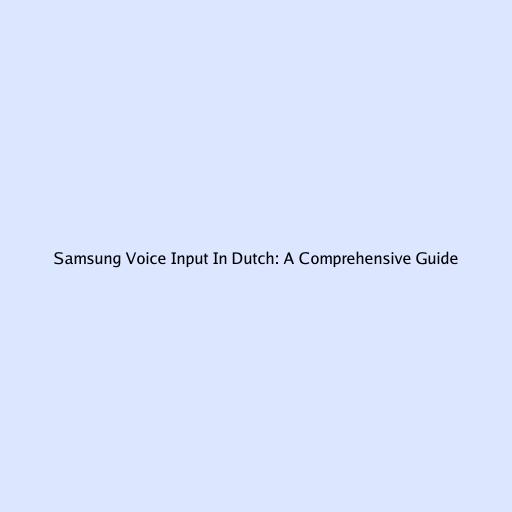 Samsung Voice Input In Dutch: A Comprehensive Guide