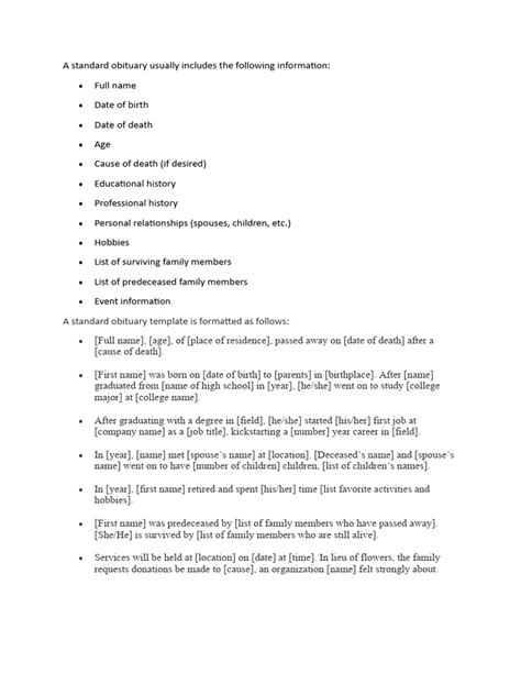 Alright, let’s break down what usually goes into a traditional obituary. When you’re looking at one in a newspaper or a standard online death notice, you’ll often find a few key ingredients. First and foremost is the identification of the deceased . This means their full name, sometimes including a maiden name or nickname, and their dates of birth and death. It’s the basic who, when, and where. Then comes the announcement of the death , often stating the date and place of passing. Following this, you typically find information about family connections . This includes mentioning surviving family members like spouses, children, grandchildren, and sometimes siblings, as well as predeceased loved ones. This helps paint a picture of their familial legacy. A significant portion is often dedicated to biographical details . This is where you learn about the person’s life story – where they grew up, their education, career highlights, military service, and any significant life events. It’s about giving a sense of their journey. Personal qualities and accomplishments are also frequently highlighted. This could be anything from their hobbies and passions to their volunteer work, community involvement, or specific achievements that made them unique. It’s the ‘character’ part of the obituary. Finally, and very practically, obituaries include funeral or memorial service details . This covers the date, time, and location of any services, as well as information about visitations or wakes. Often, there’s also a mention of where donations can be made in lieu of flowers, usually to a favorite charity or cause. While these are the traditional elements, it’s important to remember that even within this structure, there’s room for personalization. Families often choose specific words and anecdotes to reflect the personality of their loved one, making each obituary a unique tribute. Understanding these components helps us appreciate the care and thought that goes into crafting these final farewells.
