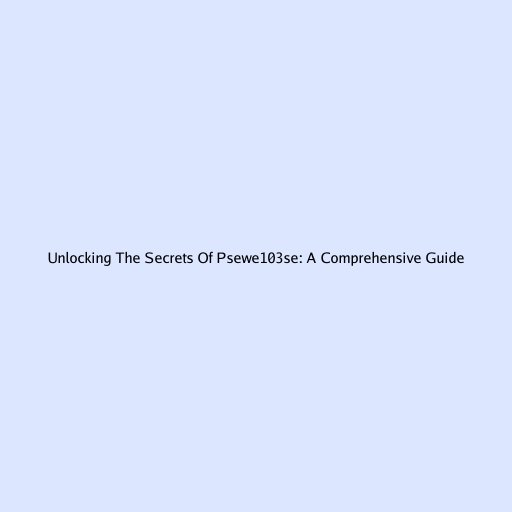 Unlocking the Secrets of psewe103se: A Comprehensive Guide