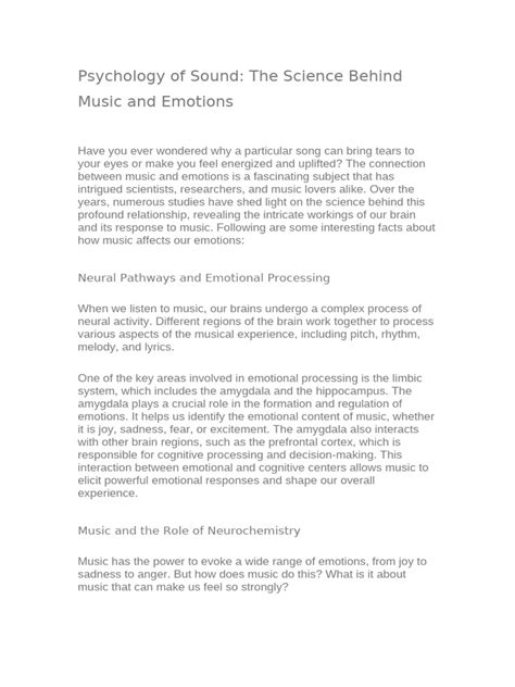 Hey guys, let’s dive into something super fascinating – the psychology of sound! This is where we explore how the sounds around us affect our minds, our feelings, and even our behaviors. We’re going to take a closer look at Henry J. Watt’s work, a real pioneer in this field. His research on the psychology of sound gives us some amazing insights into how we perceive and react to different auditory experiences. Think about your favorite song, a chilling movie score, or even the annoying buzz of a mosquito. They all have the power to influence us, right? Well, Watt’s work helps us understand why that happens and how sound waves become powerful emotional triggers. This is not just a bunch of technical stuff, it’s about understanding how your brain processes sound, how music makes you happy (or sad), and even how sound can be used to manipulate us. It’s a deep dive into the sonic world, and it’s super cool.