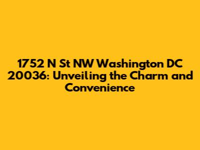 Hey guys! Let's dive into everything you need to know about 1752 N St NW, Washington DC 20036. This address isn't just a random string of numbers and letters; it's a gateway to a vibrant and historic neighborhood in the heart of the nation's capital. Whether you're a prospective resident, a curious visitor, or simply doing some real estate research, understanding the location and its surroundings is key. This area of DC boasts a unique blend of residential tranquility and urban excitement, making it a highly desirable place to live, work, and explore. The significance of this particular address extends beyond its physical location. It represents access to a rich tapestry of cultural landmarks, dining experiences, and professional opportunities. Think of it as a central hub connecting you to the best that Washington, DC has to offer. From historic row houses to modern developments, the architectural landscape surrounding 1752 N St NW tells a story of the city's evolution. You'll find tree-lined streets, meticulously maintained gardens, and a palpable sense of community pride. Residents here enjoy a lifestyle that balances the energy of downtown with the peacefulness of a residential enclave. The proximity to major transportation routes makes commuting a breeze, while the abundance of nearby amenities ensures that daily errands and leisure activities are always within easy reach. In essence, 1752 N St NW is more than just an address; it's a portal to a dynamic and fulfilling urban experience. It’s about being part of a community, having access to world-class resources, and enjoying the unique charm that defines this special corner of Washington, DC.