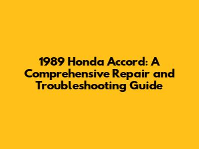 1989 Honda Accord: Repair, Common Issues, & Solutions