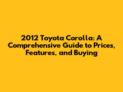 2012 Toyota Corolla: Prices, Features, & Buying Guide
