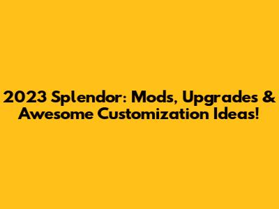 2023 Splendor: Mods, Upgrades & Awesome Customization Ideas!