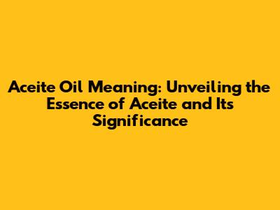 Aceite Oil Meaning: Definition, Uses, And Benefits