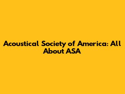 Acoustical Society Of America: All About ASA
