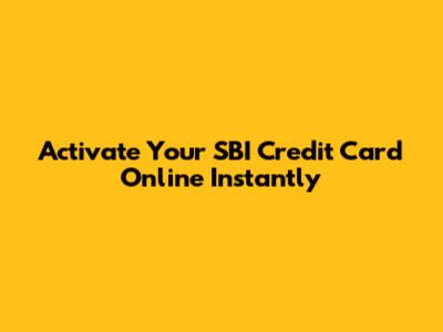 Activate Your SBI Credit Card Online Instantly