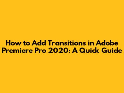 Add Transitions In Premiere Pro 2020: A Quick Guide