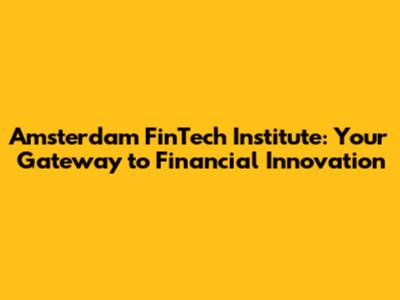 Amsterdam FinTech Institute: Your Gateway To Financial Innovation