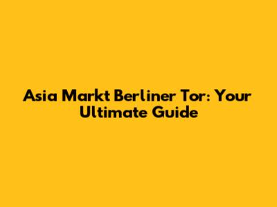 Asia Markt Berliner Tor: Your Guide