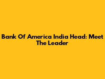 Bank Of America India Head: Meet The Leader