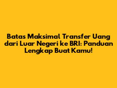 Hai, guys! Pernah nggak sih kamu lagi butuh banget kirim uang dari luar negeri ke rekening BRI kamu atau mungkin buat keluarga di Indonesia? Pasti sering banget kepikiran, "Sebatas apa sih sebenarnya aku bisa transfer uang dari luar negeri ke rekening BRI?" Pertanyaan ini penting banget buat dijawab, lho, biar nggak salah langkah dan transaksi kamu lancar jaya. Nah, di artikel ini, kita bakal kupas tuntas soal jumlah maksimal transfer uang dari luar negeri ke BRI. Kita akan bahas dari berbagai sudut pandang, biar kamu punya gambaran yang jelas dan bisa memaksimalkan transfer uang ke BRI tanpa was-was. Siap? Yuk, kita mulai petualangan informasi ini!