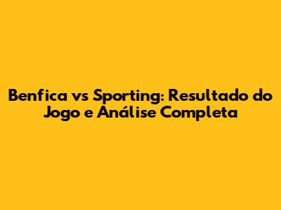 Benfica Vs Sporting: Resultado Do Jogo E Análise Completa
