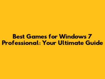 Best Games For Windows 7 Professional: Your Ultimate Guide