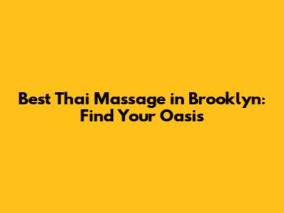 Best Thai Massage In Brooklyn: Find Your Oasis