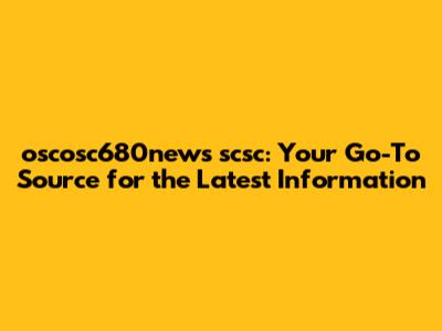 oscosc680news scsc: Your Go-To Source for the Latest Information