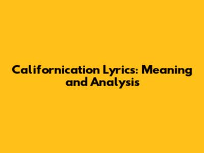 Californication Lyrics: Meaning And Analysis