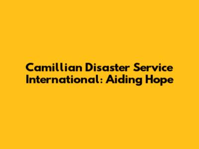 Camillian Disaster Service International: Aiding Hope
