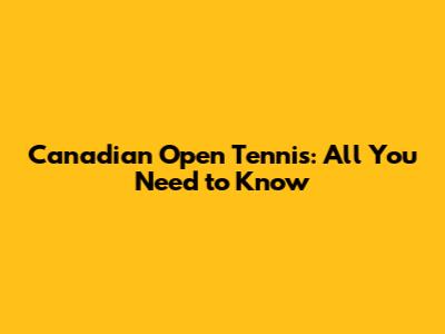 Canadian Open Tennis: All You Need To Know