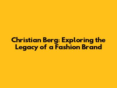 Christian Berg: Exploring The Legacy Of A Fashion Brand