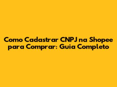 Como Cadastrar CNPJ Na Shopee Para Comprar: Guia Completo