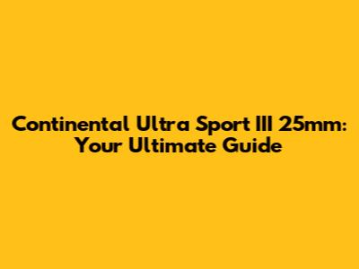 Continental Ultra Sport III 25mm: Your Ultimate Guide