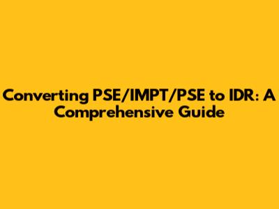 To accurately convert PSE/IMPT/PSE to IDR, you need to clarify the specific meaning in your context. Are you dealing with stocks, imports, or something else entirely? Once you know what PSE and IMPT represent, you can proceed with the appropriate conversion steps.