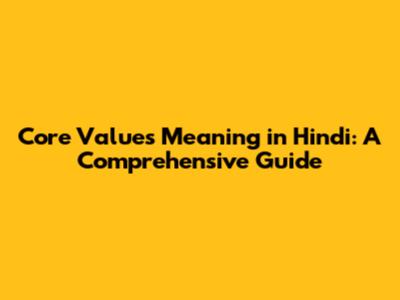 Core Values Meaning In Hindi: A Comprehensive Guide