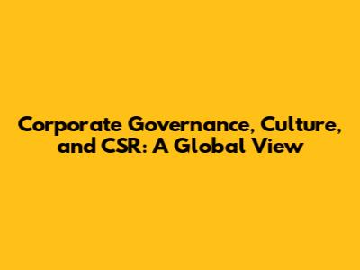 Corporate Governance, Culture, And CSR: A Global View