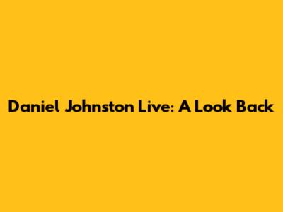Daniel Johnston Live: A Look Back