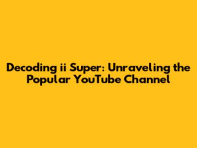 Decoding 'ii Super': Unraveling The Popular YouTube Channel