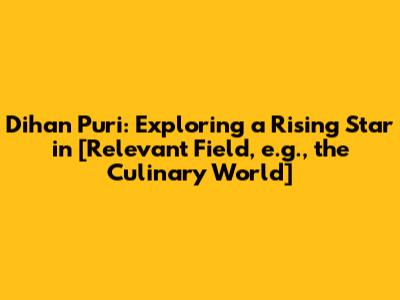 • What is Dihan Puri known for? Dihan Puri is known for their [mention key areas of expertise, e.g., innovative techniques, unique flavor combinations, or commitment to sustainability]. Their unique approach to [mention their field, e.g., culinary arts, design, or business] sets them apart.