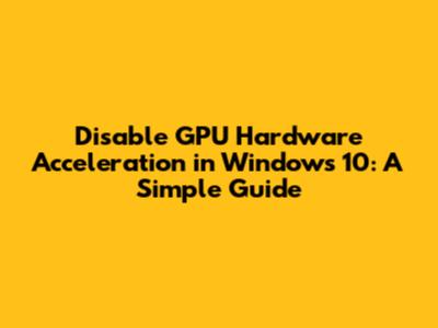 Disable GPU Acceleration In Windows 10: A Simple Guide