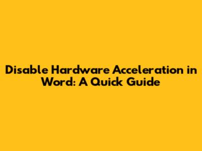 Step-by-Step Guide to Disabling Hardware Acceleration in Word