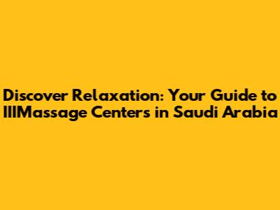 Discover Relaxation: Your Guide To IIIMassage Centers In Saudi Arabia