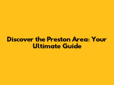 Discover The Preston Area: Your Ultimate Guide