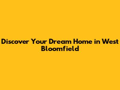 Discover Your Dream Home In West Bloomfield