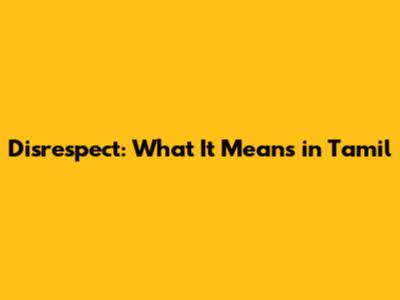 Disrespect: What It Means In Tamil