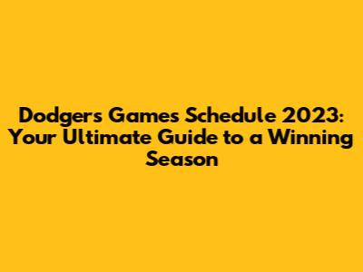 Dodgers Games Schedule 2023: Your Ultimate Guide