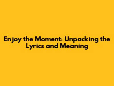 Enjoy The Moment: Meaning & Lyrics Explained